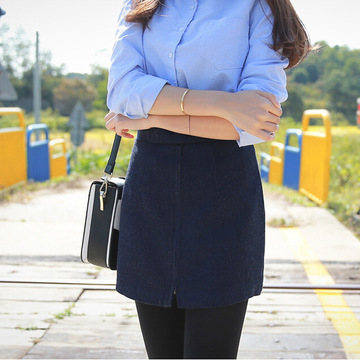 一件代發(fā) 2016春季韓國最新款時尚顯瘦毛呢包臀短裙 純色半身裙潮 /