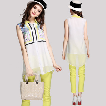 2016新品女裝胖MM大碼兩件套 印花雪紡衫九分小腳褲套裝女 /