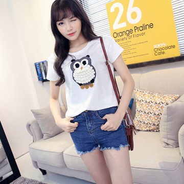 一件代發(fā) 2016夏季新款學(xué)院風(fēng)百搭學(xué)生裝貓頭鷹短袖純棉女式T恤衫 /