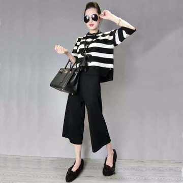 2016新款加肥加大胖MM大碼女裝七分袖上衣闊腿褲寬松兩件套裝女 /