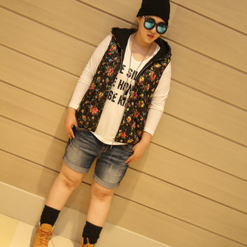 2015韓版新款秋冬季背心 夾棉拉鏈蕾絲大碼連帽棉馬甲 一件代發(fā) /