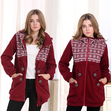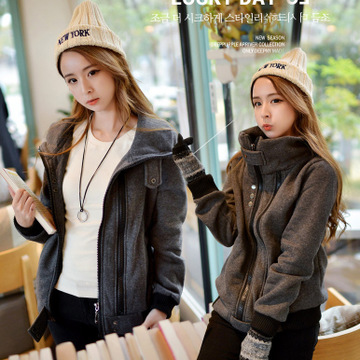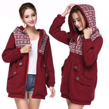 2015冬季新款襖韓版大碼女裝胖mm外套加絨加厚中長款拉練連帽衛(wèi)衣 /