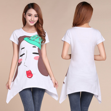 夏季新款韓版大碼女裝胖mm200斤上衣寬松顯瘦中長款棉圓領(lǐng)短袖t恤 /