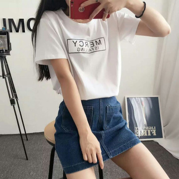 青島女裝貨源 韓國東大門字母印花純棉短袖t恤打底衫上衣女16DC07 /