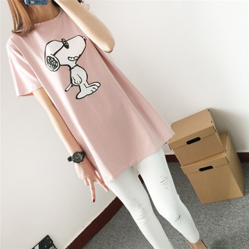 女裝貨源批發(fā)夏季女式短袖T恤史努比印花做舊T恤打底衫上衣16DC01 /
