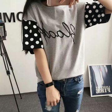 女裝貨源批發(fā)夏季女式恤袖子拼色袖刺繡字母T恤打底衫上衣16DC06 /