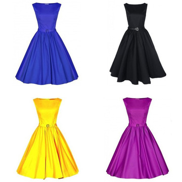 爆款復(fù)古赫本風s純色收腰大擺連衣裙送腰帶 /