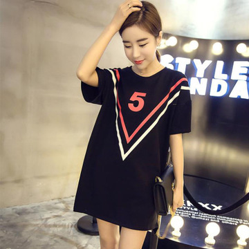 2016春夏新款韓版印花中長款t恤圓領(lǐng)短袖寬松連衣裙女潮廠家直銷 /