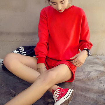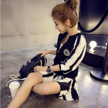 2016春新款韓版寬松圓領(lǐng)兩件套 長袖衛(wèi)衣短褲休閑套裝女廠家直銷 /