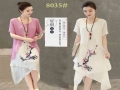 棉麻連衣裙2016夏季韓版復(fù)古文藝水墨印花長裙寬松假兩件套裙 /