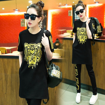 實拍2016春夏新款半袖運動休閑套裝女老虎印花時尚潮韓版女裝潮 /