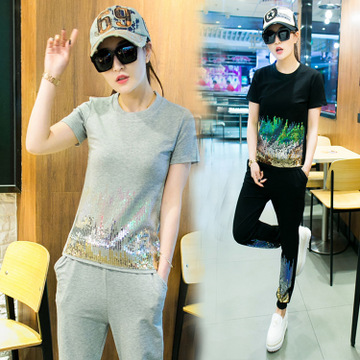 實拍2016夏裝新款休閑套裝東大門亮片時尚顯瘦套裝女潮 /