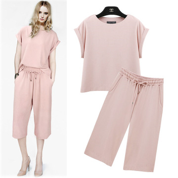 2016新款短袖套裝夏大碼女裝休閑褲兩件套時(shí)尚闊腿褲套裝 /
