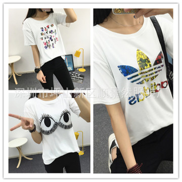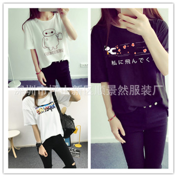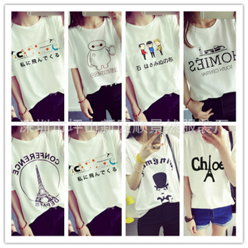 2016春裝新款韓版女裝印花短袖套頭寬松百搭t恤衫上衣女 地?cái)偱l(fā) /