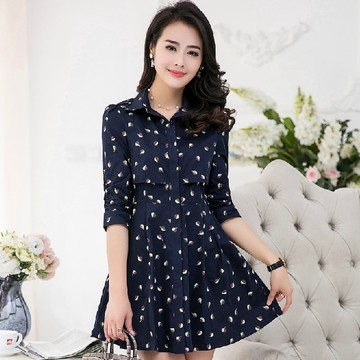 2016春裝新款連衣裙七分袖襯衫連衣裙韓版修身顯瘦大碼襯衣連衣裙 /