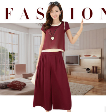 2016夏裝新款韓版女修身短袖上衣+七分褲闊腿褲兩件套控價135 /