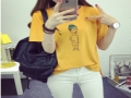 2016【拉架 出貨 實(shí)拍】韓國中長款休閑百搭個(gè)性小人寬松短袖T恤 /