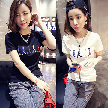 2016夏季韓版休閑卡通短袖T恤女圓領(lǐng)上衣修身時(shí)尚百搭打底衫女裝 /