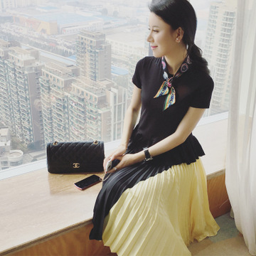 2016春裝新款歐美女裝文藝雪紡拼接半身裙仙女裙大擺長(zhǎng)裙女 /