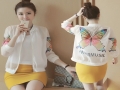2016春新款女裝韓版蝴蝶印花透視歐根紗防曬衣外套 /
