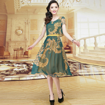 2016歐美夏裝新款女裝氣質(zhì)連衣裙夏長裙短袖雪紡連衣裙假兩件套女 /