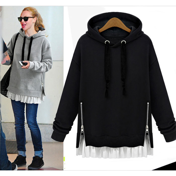 2015秋季歐美寬松大碼中長款加厚加絨長袖連帽套頭衛(wèi)衣外套女 /