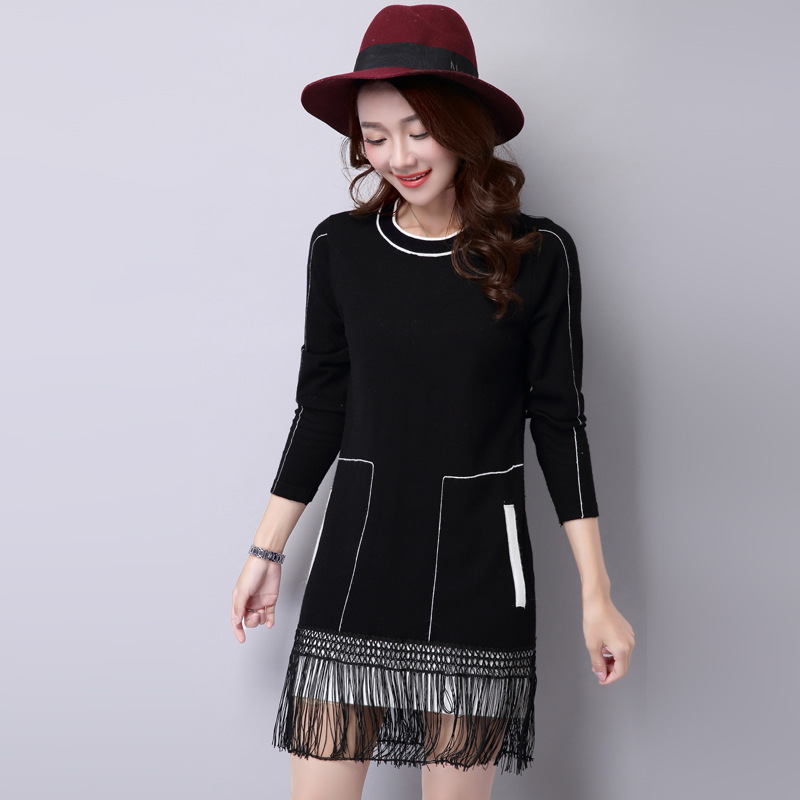 2015秋裝最新款妖精的口袋織衫女圓領(lǐng)中長款套頭打底針織衫 /