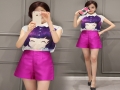 歐洲站夏裝新款女裝韓版時尚數(shù)碼印花無袖襯衫闊腿褲短褲套裝女 /