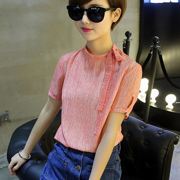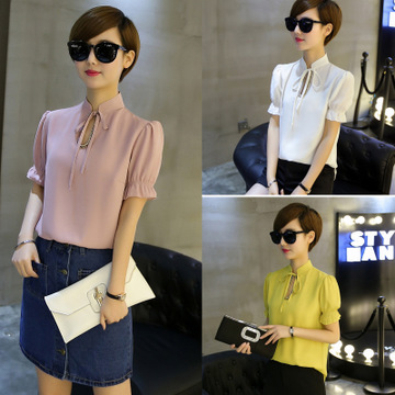 2016新款韓版雪紡蝴蝶結(jié)系帶時(shí)尚雪紡襯衫女裝百搭修身 一件代發(fā) /