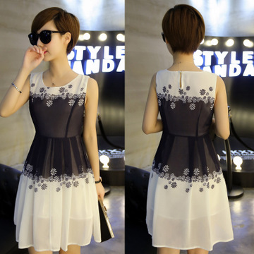 2016新款韓版夏裝時(shí)尚中國(guó)風(fēng)收腰甜蜜白搭雪紡連衣裙夏 一件代發(fā) /