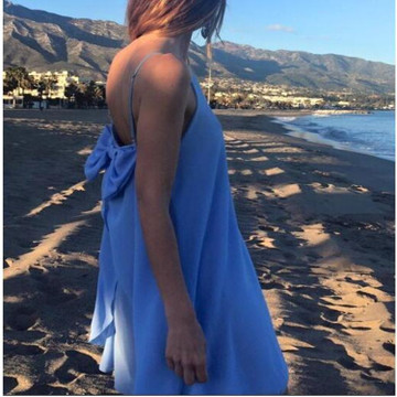 速賣(mài)通2016春夏新款蝴蝶結(jié)吊帶雪露肩雪紡連衣裙 沙灘裙外貿(mào)女裝 /