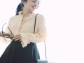 2016新款月光裁縫百搭花邊領(lǐng)新款系帶喇叭長袖襯衣女春夏裝 /