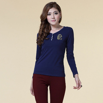 春裝長袖t恤女2016新款大碼女裝韓版修身小衫V領(lǐng)打底衫 /