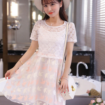 2016夏裝新款清爽短袖上衣女+吊帶連衣裙歐根紗兩件套 /