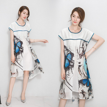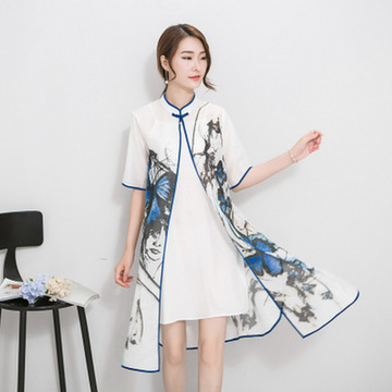 2016新款女裝真絲連衣裙外套長款2件套長袖a字連衣裙女 /