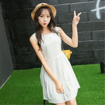 2016大碼女裝棉麻文藝連衣裙小清新碎花修身無(wú)袖背心裙子 /