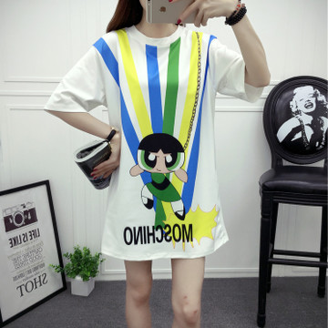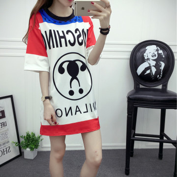 實(shí)拍2016夏新款泰國潮牌印花字母卡通條紋中長款短袖寬松T恤 /