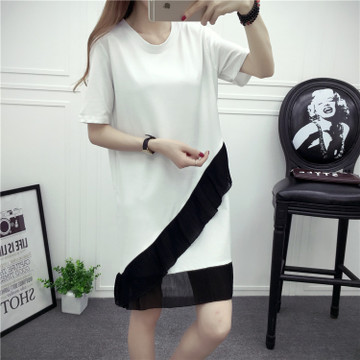 實(shí)拍2016夏新款女裝韓版時(shí)尚荷葉邊連衣裙中長款顯瘦短袖T恤 /