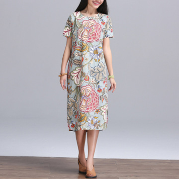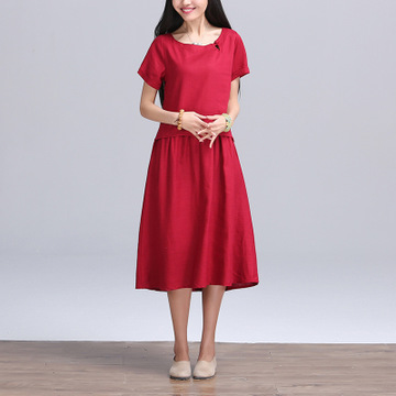 實拍2016夏裝新款 顯瘦短袖棉麻連衣裙大碼中長款氣質(zhì)文藝范 /