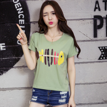 2016夏印花短袖體恤寬松顯瘦純棉上衣服韓版學(xué)生閨蜜裝 /