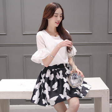 【實拍】連衣裙新款學(xué)生套裙長袖雪紡衫半身裙兩件套裝裙子夏 /
