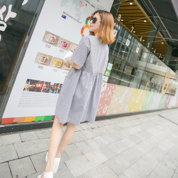 韓版時(shí)尚孕婦裝連衣裙夏裝寬松大碼孕婦格子裙 /