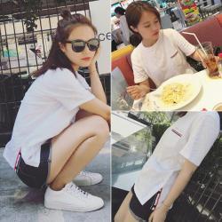 2016夏季新款韓版女裝上衣批發(fā)寬松顯瘦純色竹節(jié)棉短袖t恤女 /