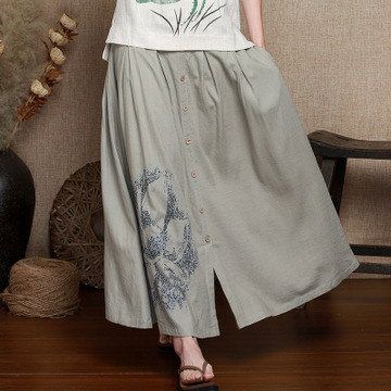 2016女裝新款民族風(fēng)印花半身長裙 女大擺寬松棉麻長裙一件代發(fā) /