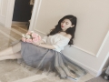 2016夏季新款蕾絲拼接連衣裙一字肩假兩件套網(wǎng)紗大擺裙 /