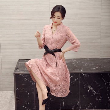 2016新款春裝韓版修身大碼中袖蕾絲連衣裙中裙正品女裝夏款 /