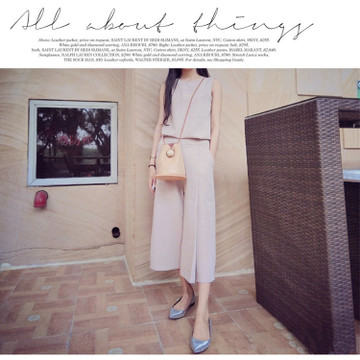 2016春夏新款無袖名媛兩件套闊腿褲寬松名媛套裝女裝新品一件代發(fā) /