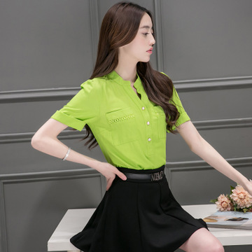 • 實拍夏季韓版純色短袖棉麻衫女時尚修身顯瘦百搭棉麻上衣潮 /