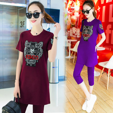 • 實拍休閑套裝女2016夏裝新款短袖運動服韓版修身七分褲衛(wèi)衣 /