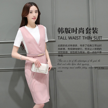 • 實拍2016夏裝新款韓版顯瘦套裝小香風(fēng)時尚中長款兩件套連衣裙 /